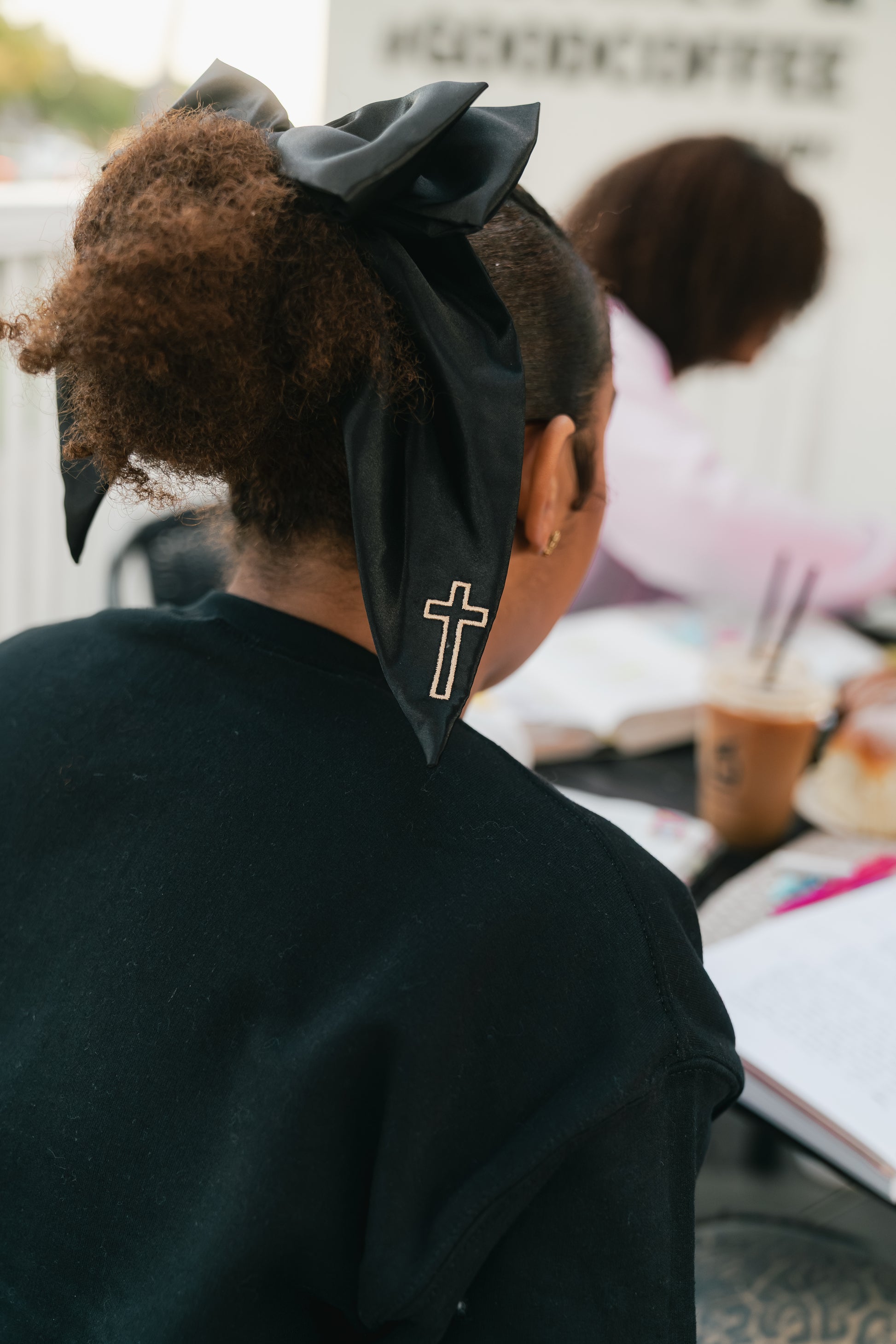 Embroidered Cross Satin Hair Bows