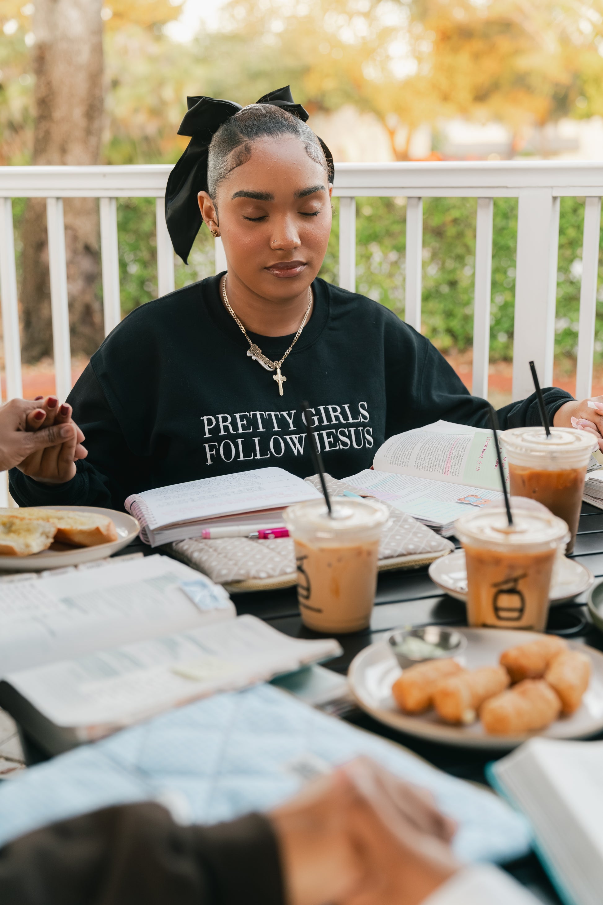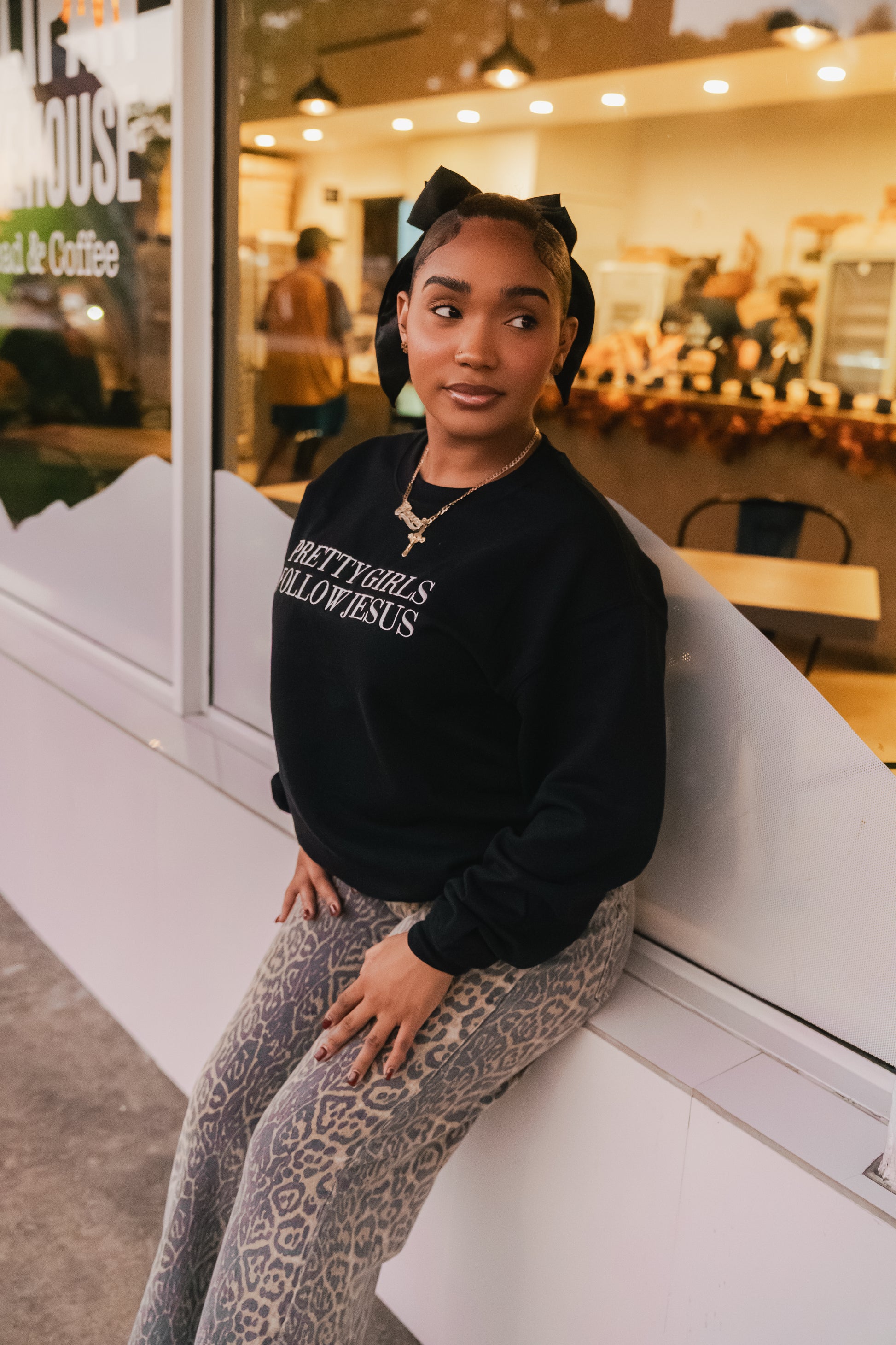 Embroidered Pretty Girls Follow Jesus Sweatshirt – Black
