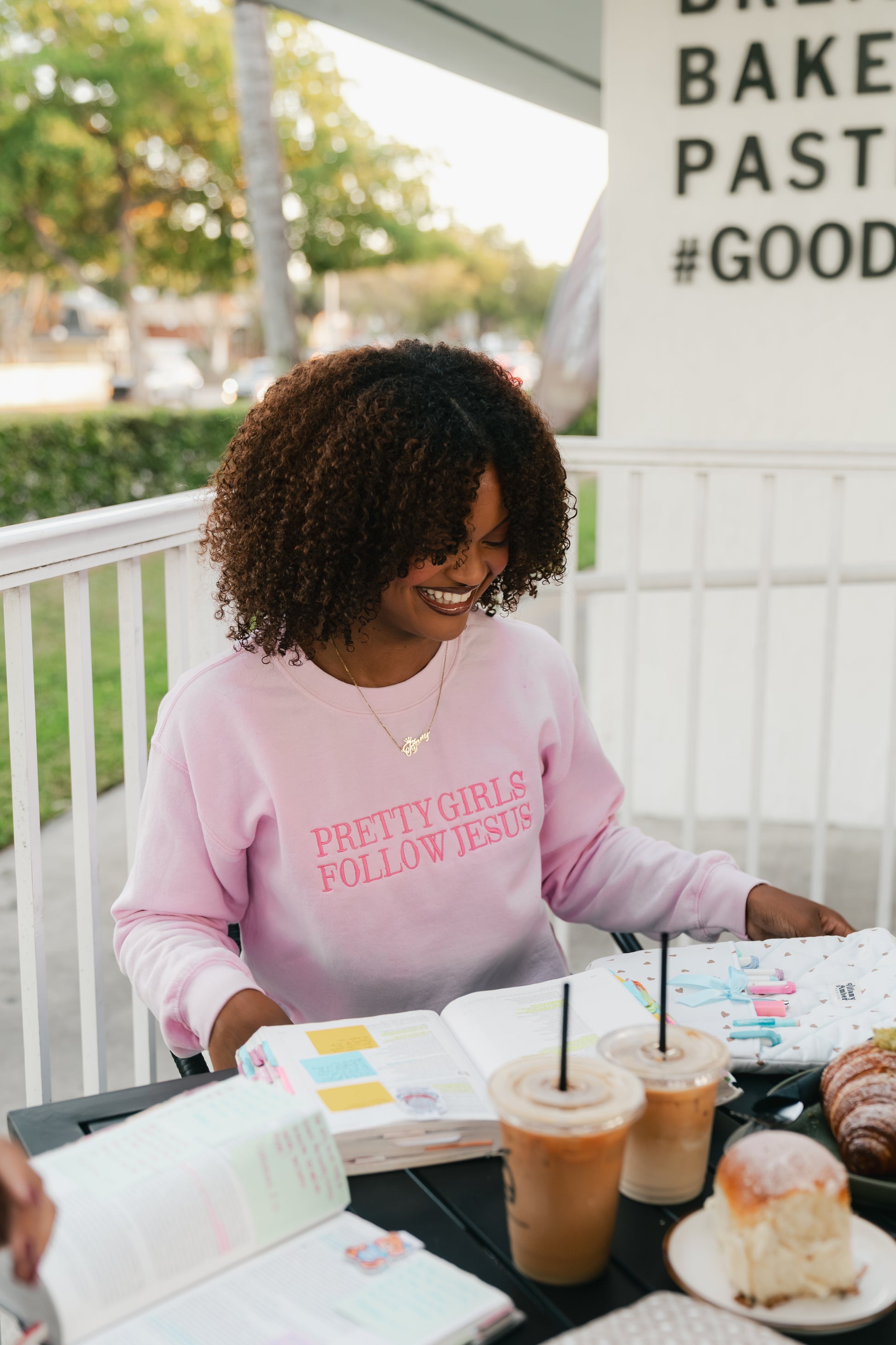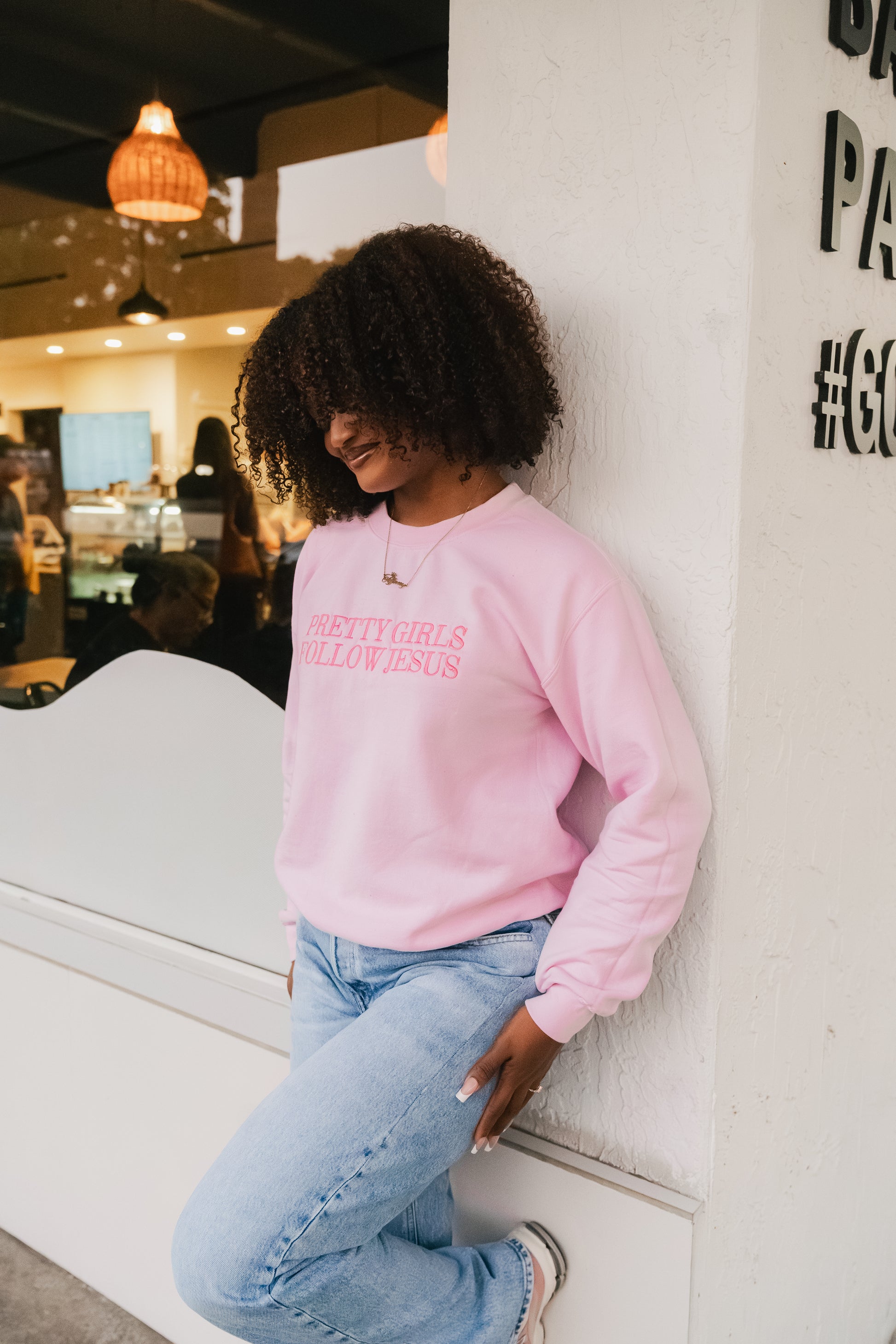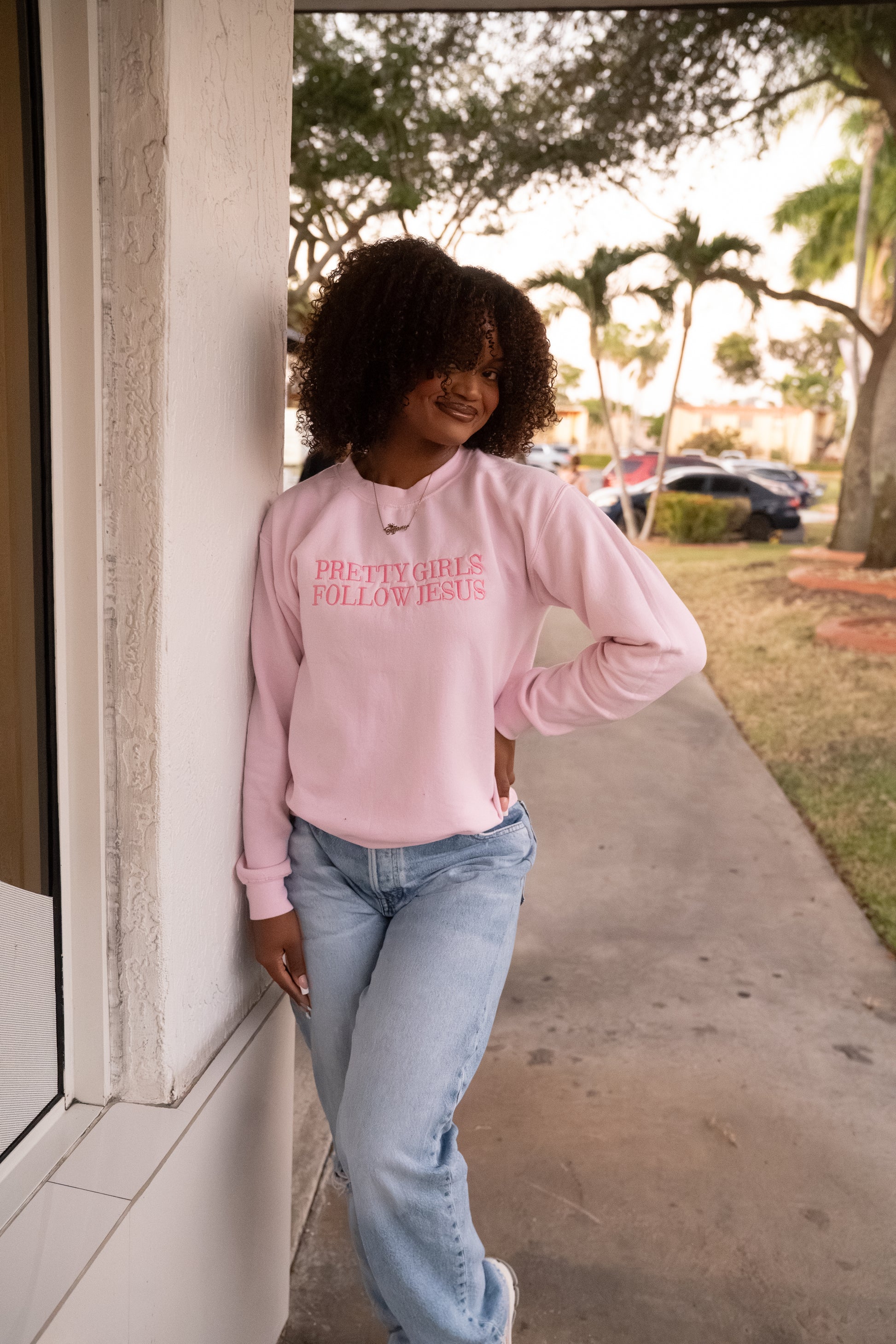 Embroidered Pretty Girls Follow Jesus Sweatshirt – Pink