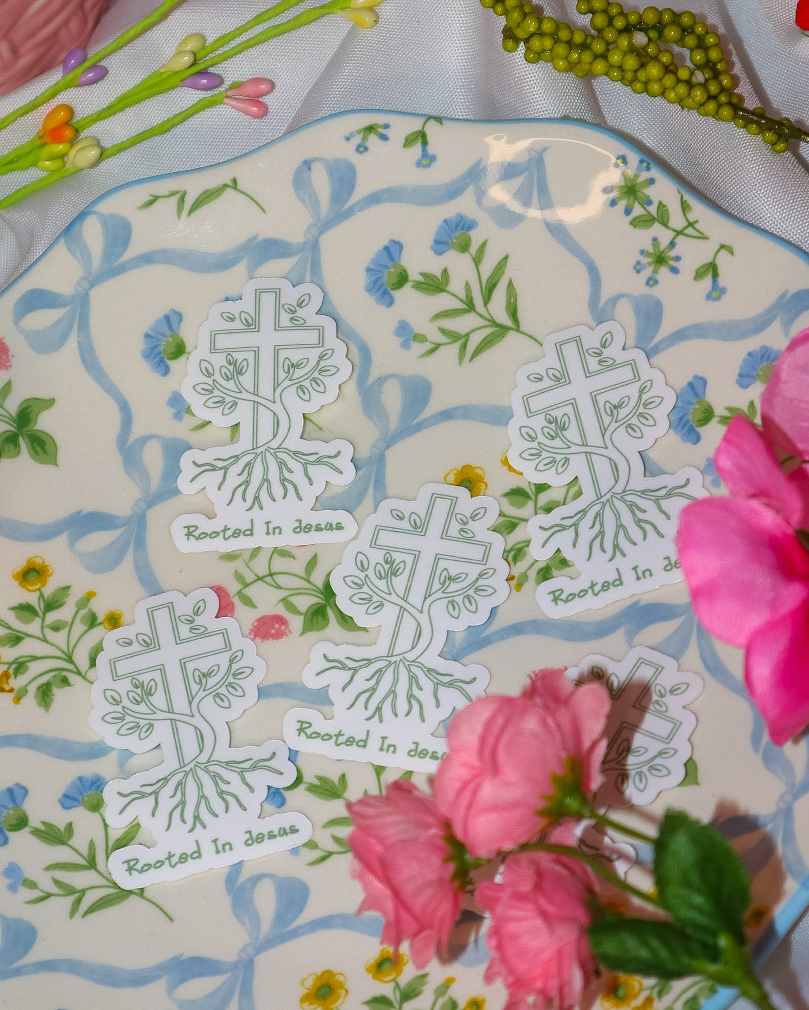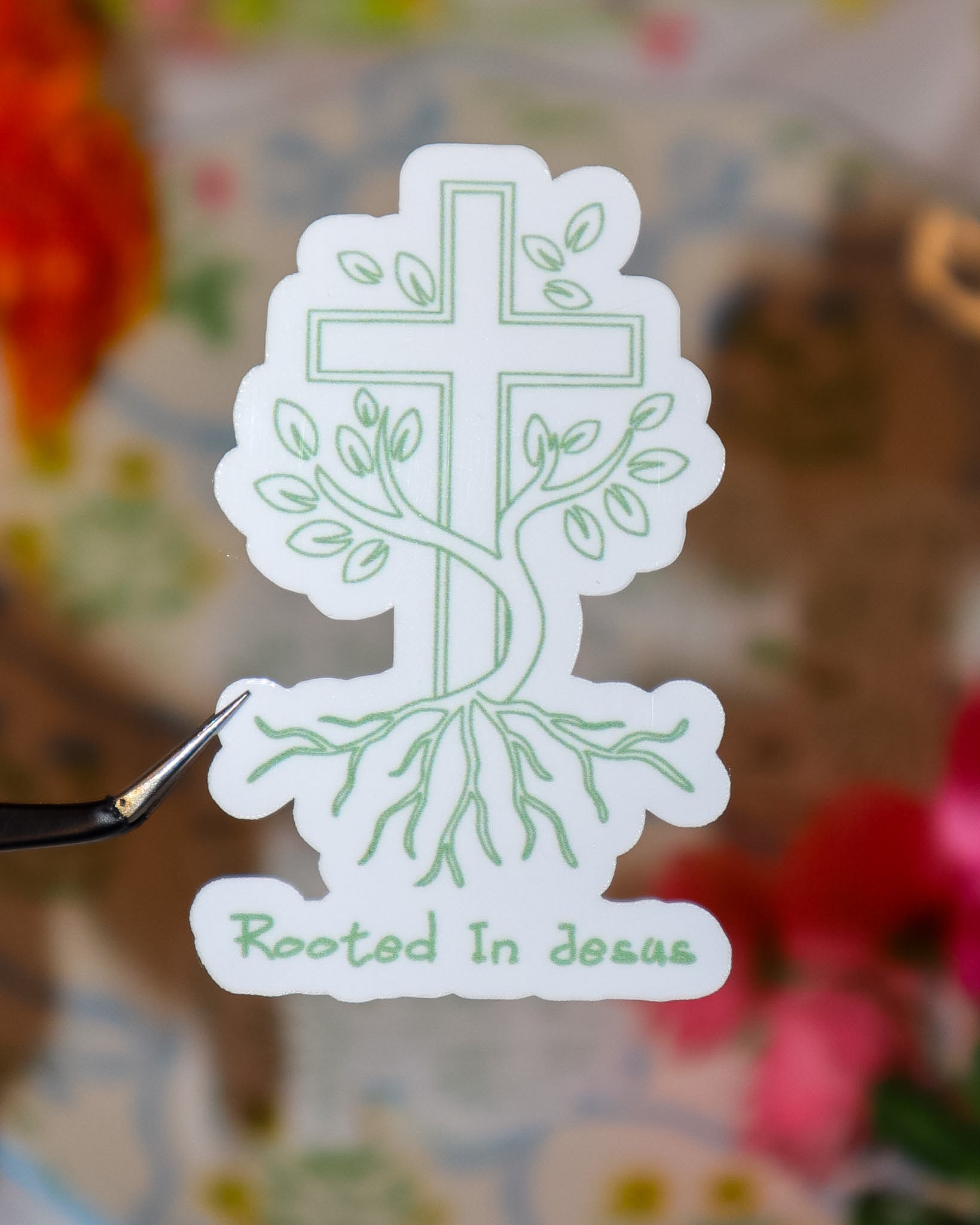 The Rooted In Jesus sticker is a simple yet powerful reminder of where your strength comes from.